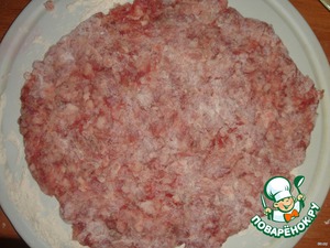 - Фарш мясной (любой мелкого помола, я люблю свино-говяжий) — 400 г
