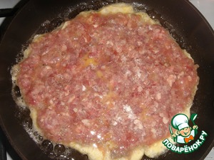 Аккуратно сдвиньте фаршевую лепешку с яичной массой на раскаленную сковороду с несколькими ложками масла (не более 2 ст. л. масла). Необходимо обжаривать на сильном огне, пока яйцо не зарумянится.