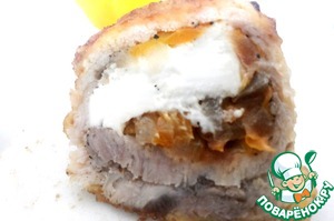 Рулеты из свинины с морковью, луком и сыром Фета.