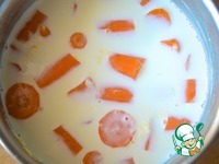 1. Морковь очистить, 3 морковки отложить, остальные крупно нарезать и отварить в молоке до мягкости, примерно 15 минут.