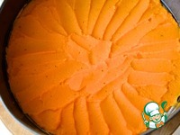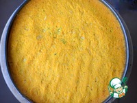 6. Форму для запекания смазать растительным маслом, на дно положить пергамент и выложить половину морковного пюре.
