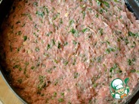 9. Поверх лука и моркови выложить половину брокколи, затем мясную начинку и еще один слой брокколи.