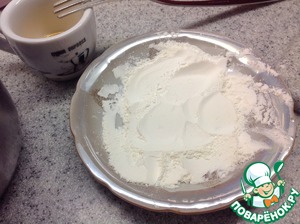 • Второе яйцо взбиваем в маленькой мисочке. Тарелку положить муку.