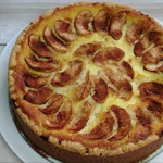 вывод: пирог отличный, получается очень большой, хорошо пропекается. сверху сахаром не жалея надо посыпать. так как яблок у меня получилось больше - они чуть проступали через начинку и был красивый рисунок (если их красиво выложить). для себя - пирог повторю, но думаю начинку уменьшить в 2 раза, очень уж основа вкусная)))