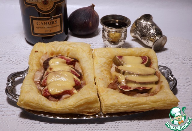 Слоеное тесто и инжир прекрасно дополняют друг друга. Курица с чесноком и сыром классика. А вот сочетание всего сразу ну ооочень необычно. А если еще и мед добавить, то буйство вкусов Вам обеспечено.