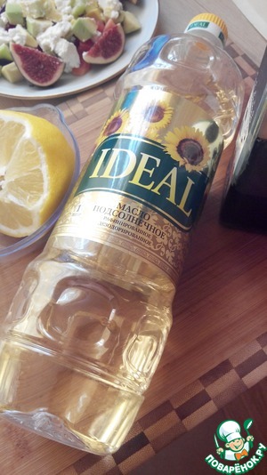Приготовьте заправку. Смешайте растительное масло (фирмы Ideal), бальзамический уксус и лимонный сок. По вкусу добавьте соль и свежемолотый перец.