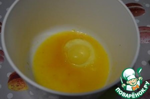 Яйцо взбить с апельсиновым соком и цедрой.