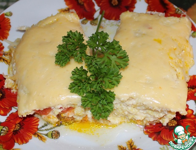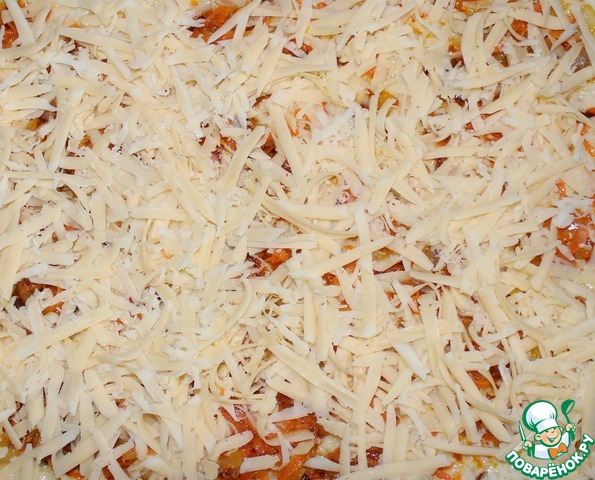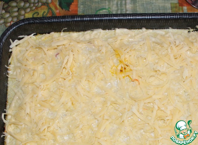 • Затем жареные овощи "припорошим" половиной всего сыра (150 гр)...