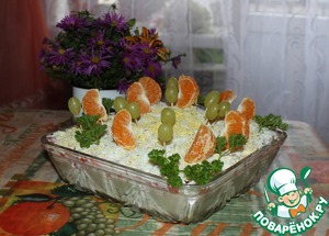 Салатик называется"Праздничный салют"-вот я и решила украсить фруктами в виде салюта.. а уж каков салатик-решать Вам!!!