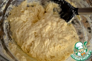4. Всыпать муку и все аккуратно размешать. Вид у теста на данной стадии не самый привлекательный, но пусть это вас не смущает.