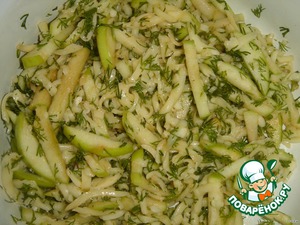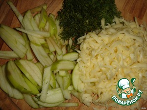 Сыр натереть на крупной терке, очищенное от плодоножек яблоко нарезать соломкой, укроп мелко порезать.