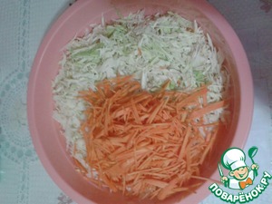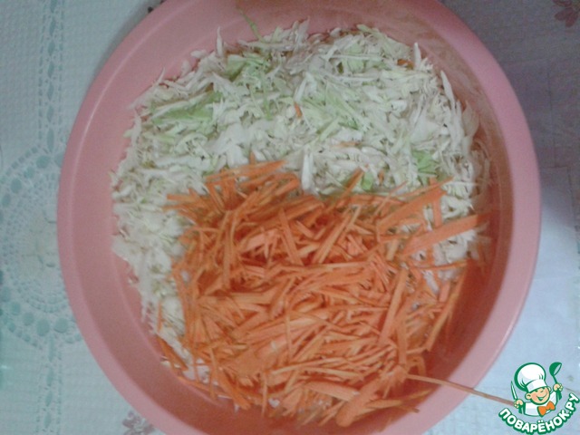Шинкуем капусту, морковь трем на терке. У меня ушел один большой вилок капусты