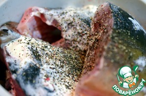 Горошины перца раздавить, добавить в молоко, посолить. Карпа нарезать на порционные куски и залить молочной смесью, оставить на 15-20 минут.