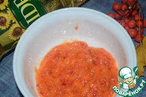 Измельчить рябину и перец в блендере.