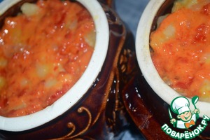 Вливаем в горшочки рябиновый соус.