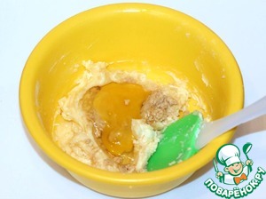 Добавьте миндальную пудру и яйцо, перемешайте.