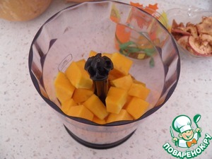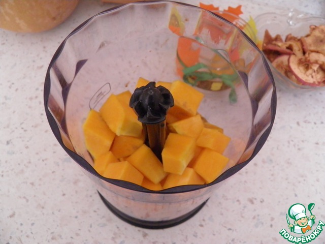 Тыкву нарезаем на кусочки и отправляем в кухонный комбайн. -