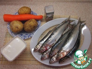Итак имеем: обжаренную морковку, нарезанный мелкими кубиками картофель, филе рыбки с головой и хвостом и деревенские сливки.