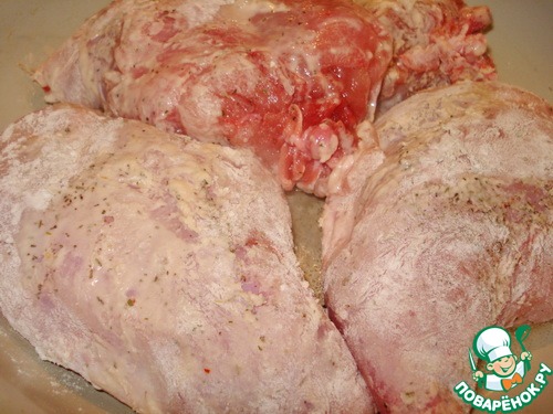 Разогреть оливковое масло и обжарить кролика, с двух сторон до румяной корочки.