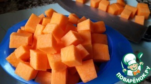 Тыкву нарезать кубиками 1х1 см (примерно).