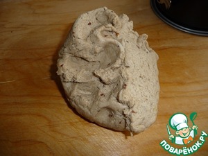 Через 90 мин. тесто вынуть из ведерка, выложить на доску смазанную растительным маслом, слегка обмять.