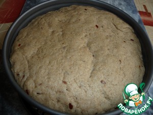 Накрыть пленкой или закрыть миской и убрать в теплое место для подъема. Разогреваю духовку на 50С, нагреваю, отключаю и помещаю форму с тестом вовнутрь.