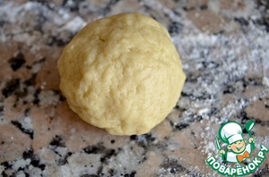 4. Разделить тесто на 8 частей, раскатать каждую в тонкий круг и разрезать каждый круг пополам.