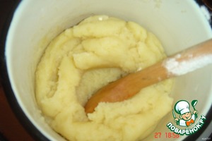 Всыпать сразу всю муку и замесить тесто, вымешивая до тех пор, пока оно не начнет отставать от стенок посуды, приблизительно пару минут.
