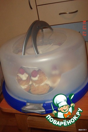 P.S. Т. к. лакомство готовилось и для дедушки с бабушкой, то свой "Веночек" я сразу уложила в перевозку для тортов. Объясняю, в чем это таком странном находится мой десерт :lol: