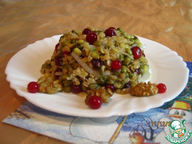 Рецепт «Салат из фасоли маш, чечевицы и клюквы»: