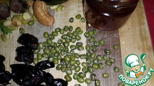 - Орехи (или по вкусу; орехи любые - у меня самодельное ассорти (миндаль, лесные, кэшью, бобы сои, кунжут, грецкие, фисташки, семечки разные)) — 75 г