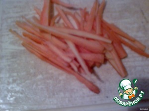 Морковь режем длинными тонкими кусочками, как корейскую. обжариваем в том же масле.