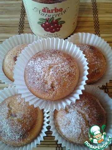 В силиконовые формочки выкладываем столовую ложку теста, сверху чайную ложку ягодного соуса D'arbo и снова столовую ложку теста. Кексы хороши как с брусничным соусом, так и с клюквенным. Ставим в разогретую духовку, выпекаем при 175-180* ориентировочно 35-40 мин.