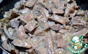 Как только пламя угаснет, добавить печень и потушить ещё минут 5. Посолить, поперчить по вкусу и подать к столу! Приятного аппетита!
