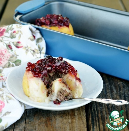 Рецепт «Запеченные яблоки с паштетом под брусничным соусом»: