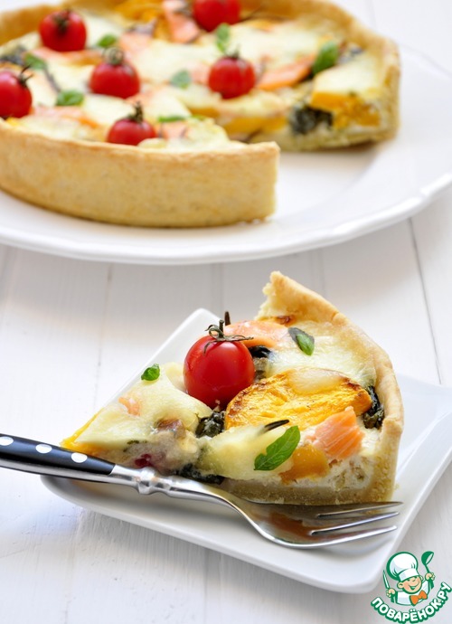 Рецепт «Тарт с лососем, овощами и моцареллой»: