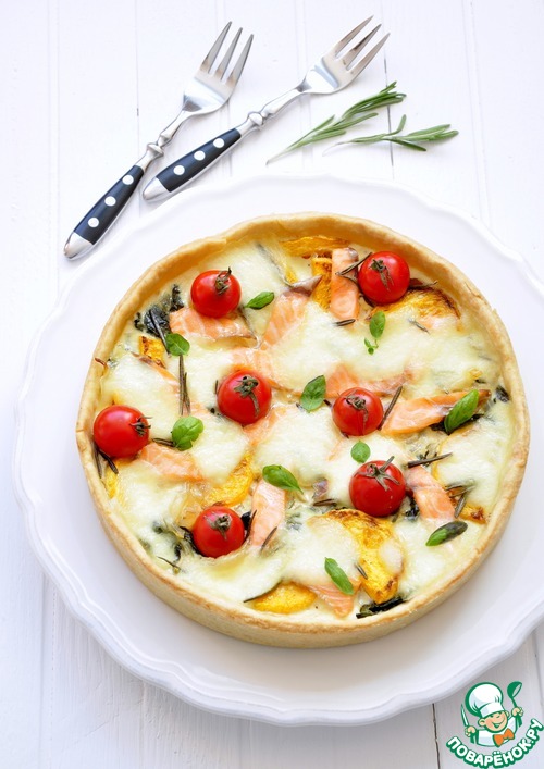 Тарт с лососем, овощами и моцареллой
