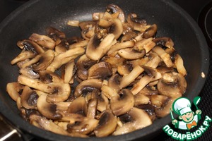 Грибы обжарить в оливковом масле на раскаленной сковороде до золотистого цвета и отставить в сторону (подождут, или выполнять этот шаг пока готовится мясо).