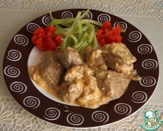 Просто в приготовлении. Можно использовать как самостоятельное блюдо с овощами или салатом или же, как подлив для гарнира. Мясо я использую и свинину, и телятину, и говядину. Свинина может быть и с прослойкой жира, и нежирная. Блюдо можно готовить в чугунке, кастрюле с толстым дном или даже просто в сковороде.