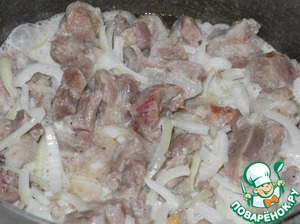 Если мясо нежирное, то в нашу посуду положим немного жира, можно сливочное или подсолнечное масло. Я, в основном, использую смалец.