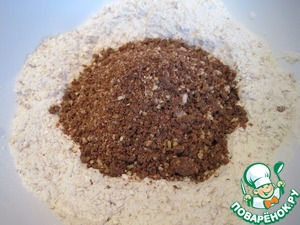 Подмешаем шоколадную смесь к сухими ингредиентам.