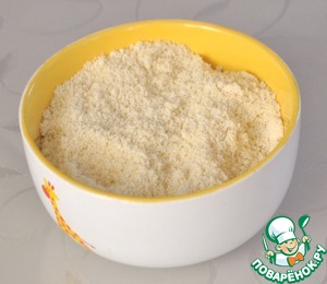 Посыпать тесто панировочными сухарями и миндальной мукой.