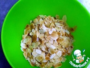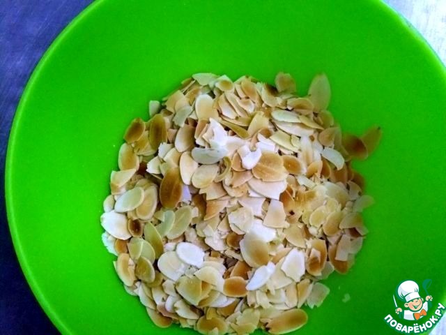 Лепестки миндаля подрумянить в духовке или на сухой сковороде.