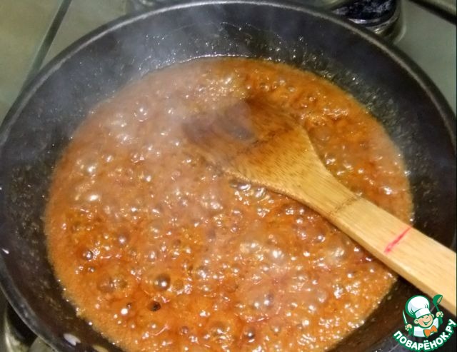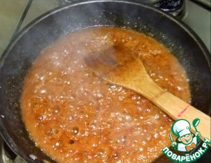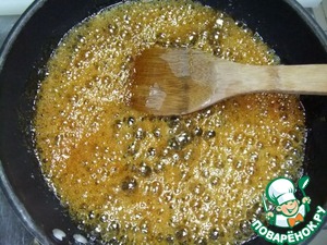Уварить сироп до пробы "Твердый шарик". Добавить сливочное масло. Если любите конфеты помягче, то нужно уварить до пробы " Мягкий шарик".