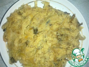 Сначала готовим начинку. Она может быть разнообразной, на ваш вкус и цвет)) В данном случае отвариваем картофель и делаем из него густое пюре. Капусту шинкуем, солим и обжариваем на подсолнечном масле до готовности. Готовые капусту и картошку смешиваем. Готовую начинку оставляем остывать. На вид начинка не очень красивая, но очень вкусная;)