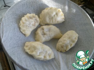 Варить вареники можно в мультиварке или пароварке. Но я выбрала "дедовский" способ: обвязала кастрюлю марлей. Слепленные вареники располагаем на расстоянии друг от друга (т. к. они очень увеличиваются в объёме). Варим на среднем огне под закрытой крышкой 7-8минут. Если вареники переварить, они потеряют свой объём.