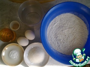 Готовим все ингредиенты для теста. Муку просеем через сито в глубокую миску. В муку добавляем все сухие компоненты и хорошо перемешиваем.
