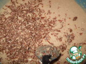 На тёрке трём шоколад. Добавляем муку, разрыхлитель и соду, замешиваем тесто.