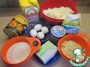 Ингредиенты для «Творожно-персиковый пирог с миндальной посыпкой»: