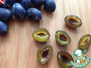 И начинку: сливы вымоем, обсушем, разрежем напополам и уберем косточки.